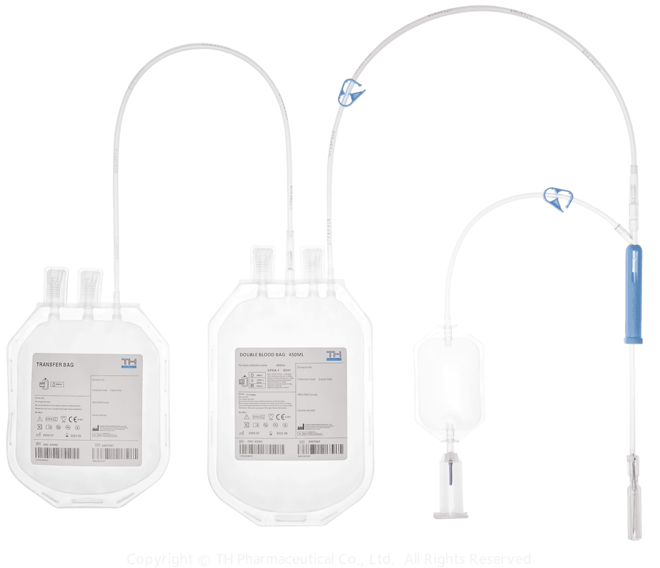 For the collection of whole blood, storage and transfusion of the blood components. The primary bag contains CPDA-1 anticoagulant solution.